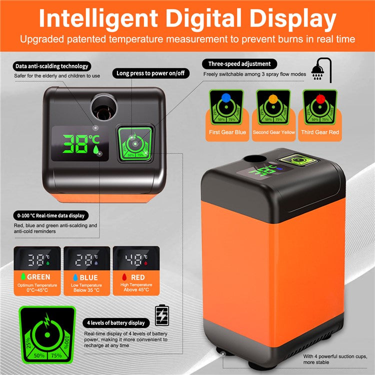 - Älykäs lämpötilanäyttö: Älykäs digitaalinen näyttö tarjoaa reaaliaikaisia ja värikoodattuja lämpötilalukemia. Seuraa veden lämpötilaa helposti välttääksesi liian kuuman tai liian kylmän veden lämpötilan aiheuttamat epämukavuudet