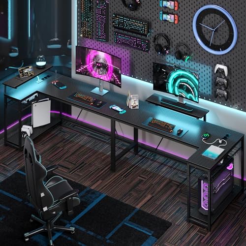 Pelipöytä L-Shape LED 2xUSB 3xAC 147cm