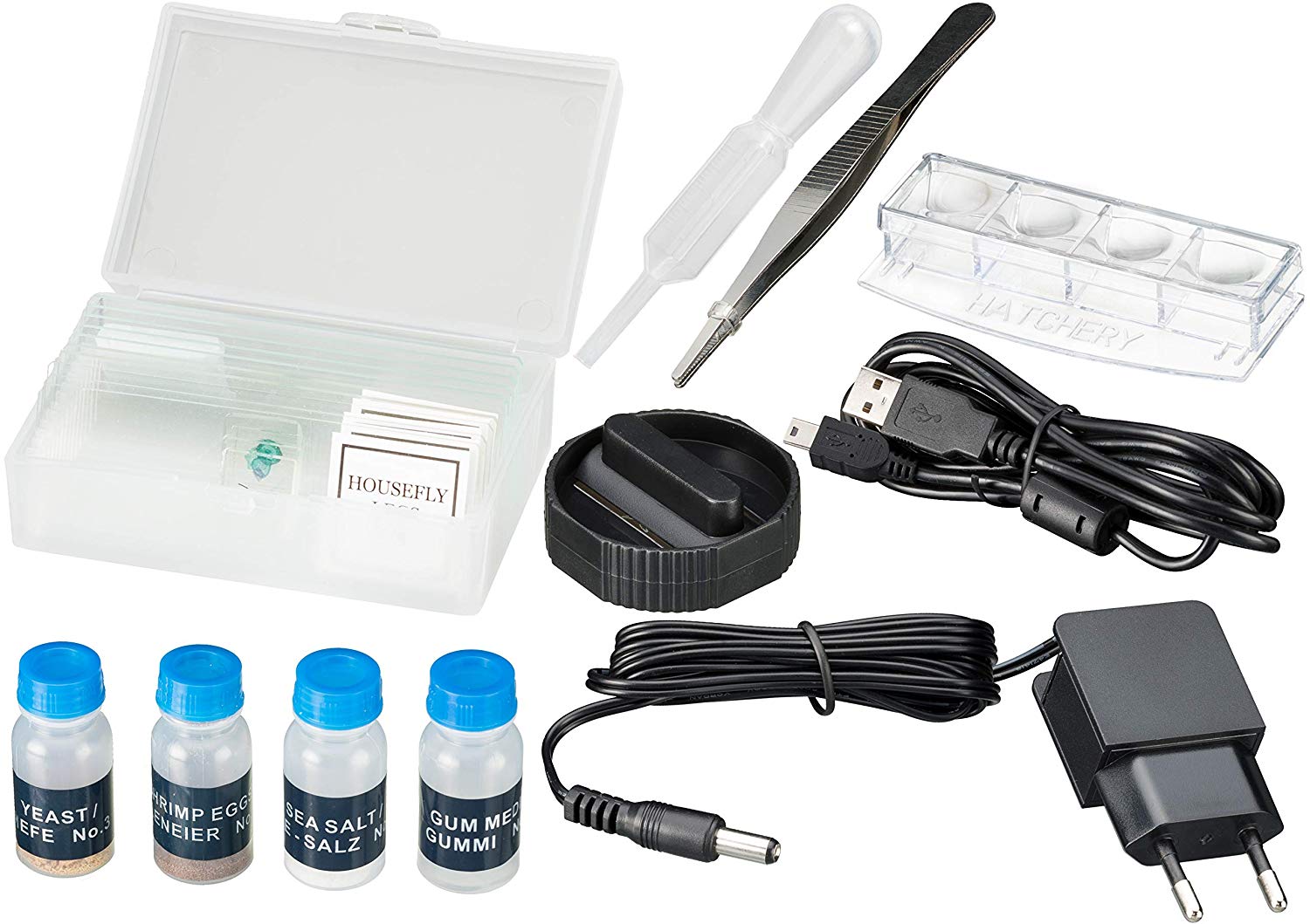 USB-portin kautta mikroskooppi voidaan kytkeä tietokoneeseen ja microSD-korttipaikka tarjoaa lisämuistia.