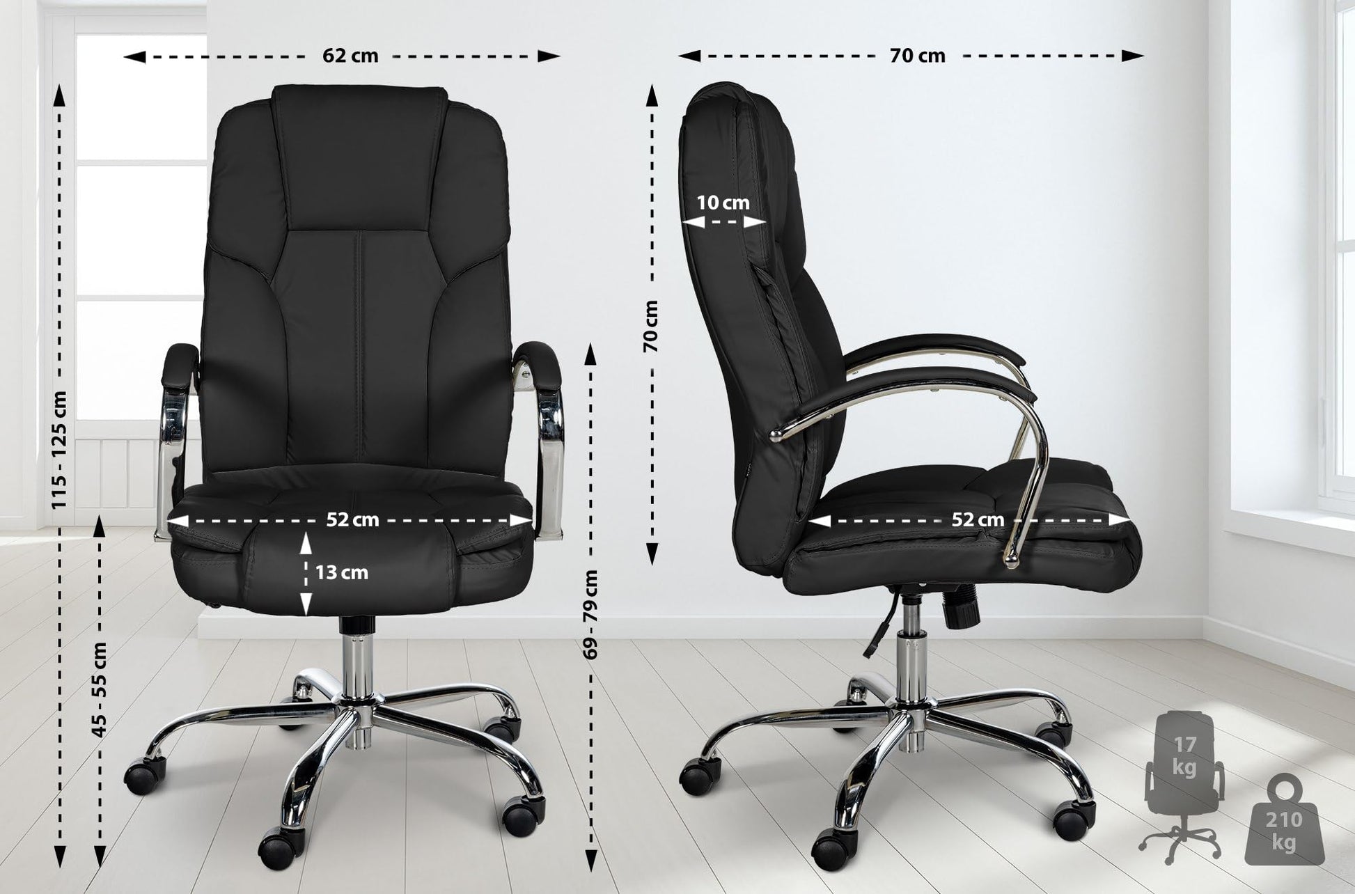 - XXL-istuinmukavuus – nauti parhaasta istumismukavuudesta reilun istuinleveyden ja 13 cm paksuisen istuinpehmusteen ansiosta, ja päällinen on päällystetty kestävällä keinonahalla.