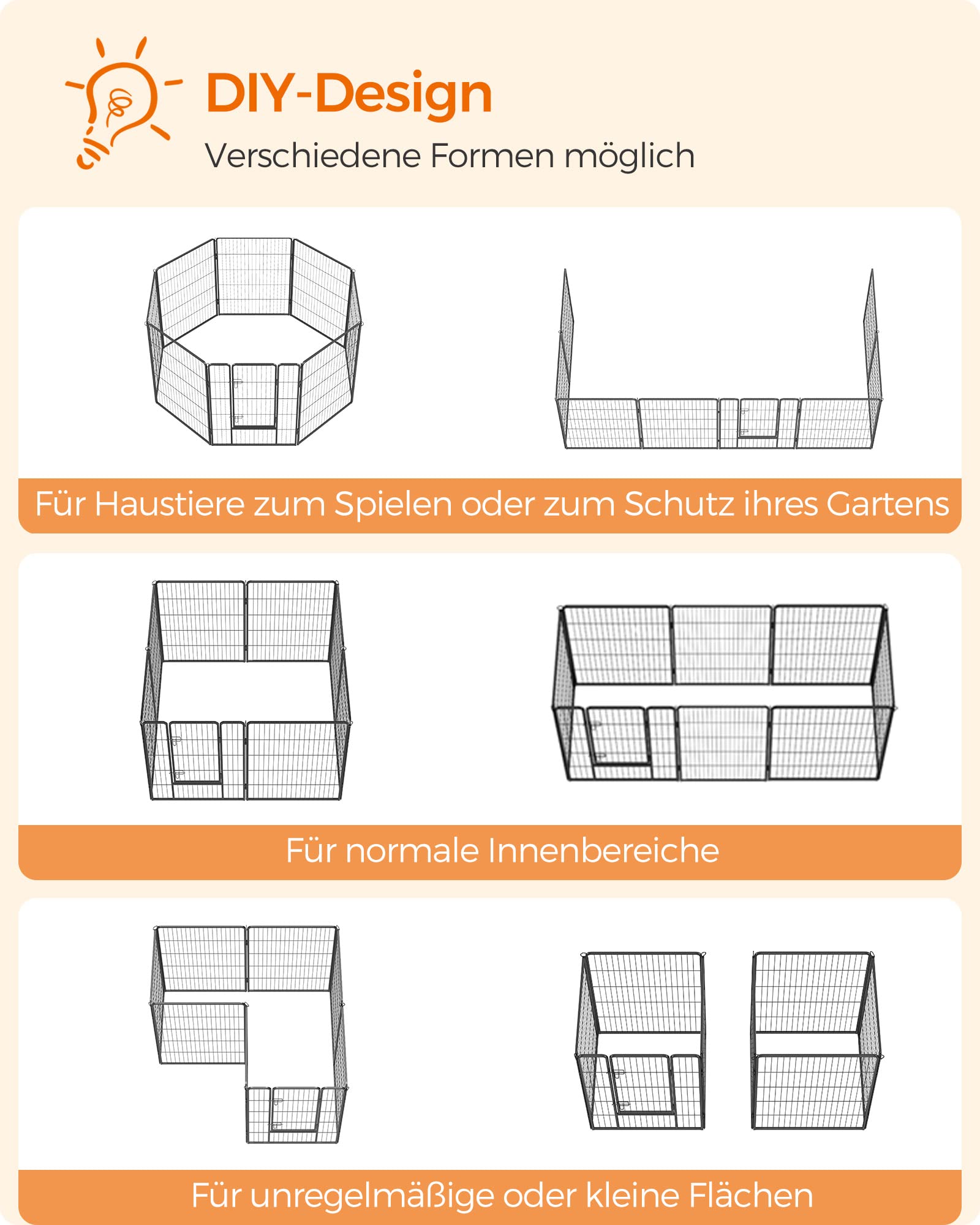 - Tee itse, rajattomat mahdollisuudet: Tämä kotelo koostuu kahdeksasta 77 x 100 cm:n ristikkoelementistä ja voidaan asettaa neliön, kahdeksankulmaisen, suorakaiteen tai muun muotoon tarpeidesi mukaan