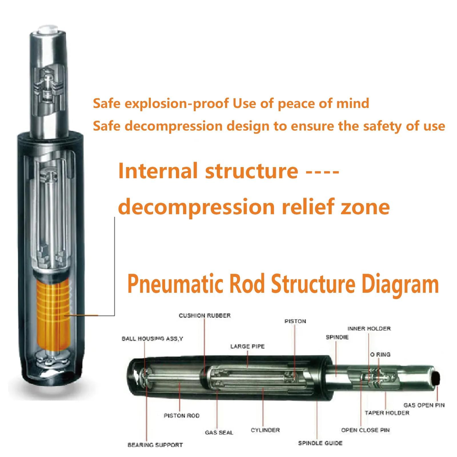 - Helppo asennus Työtuolin kaasujousi on helppo asentaa. Irrota vanha kaasujousi vain napauttamalla vasaralla ja aseta uusi tilalle ilman työkaluja.