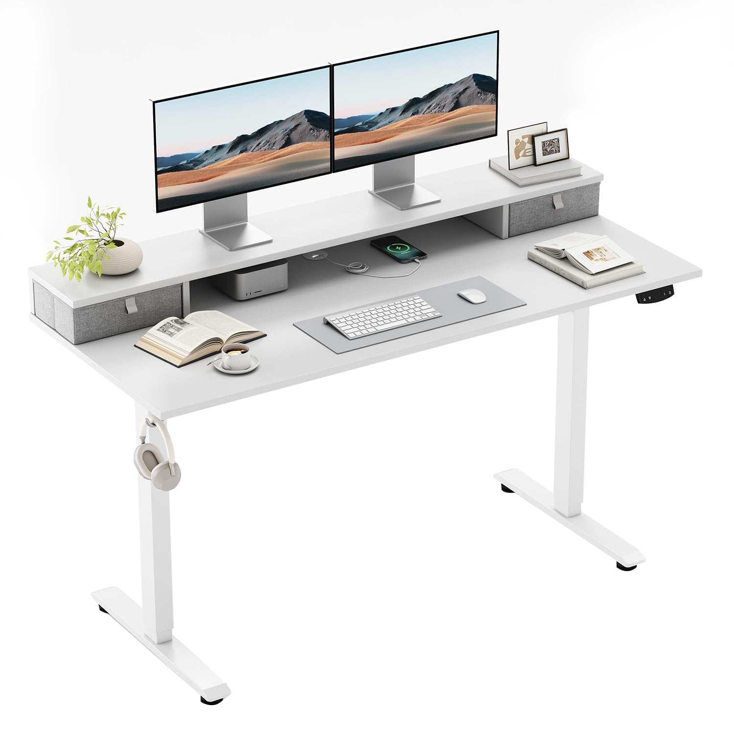 - 2 laatikkoa: Pöydän yläpuolella olevat kaksi kangaslaatikkoa auttavat järjestämään tavarasi ja pitämään työpöydän aina puhtaana ja siistinä.
