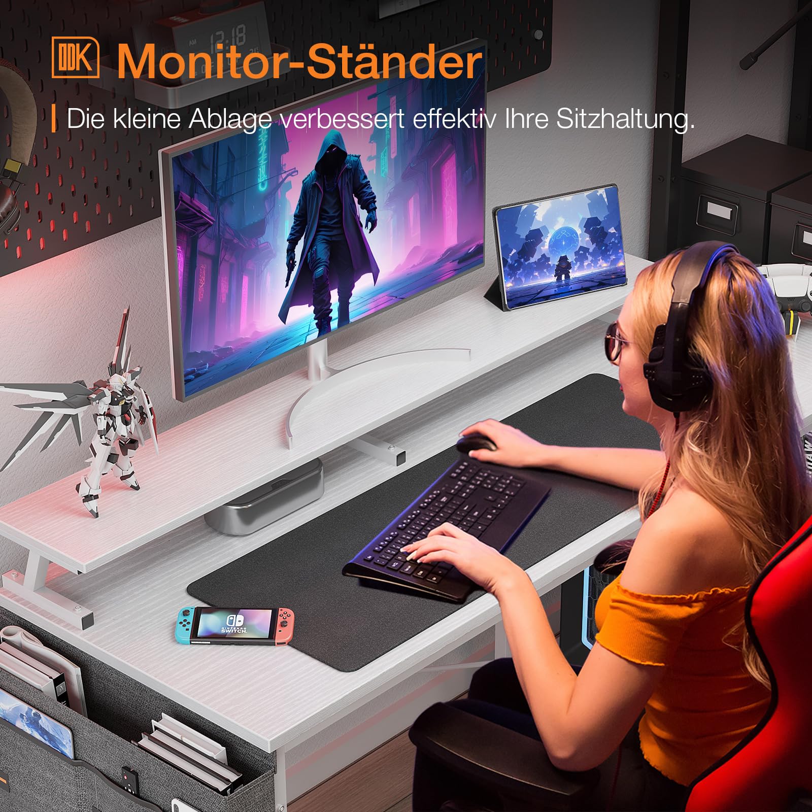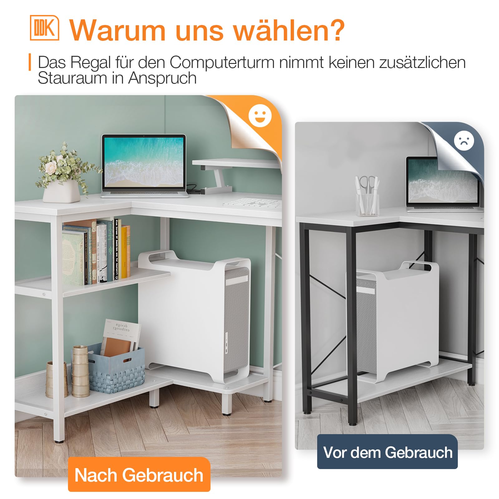 - Suuri työtaso ja runsaasti säilytystilaa: L-muotoinen pelipöytä on kooltaan 147 x 80 cm ja tarjoaa tilavan työpisteen kirjoittamiseen, opiskeluun, pelaamiseen ja muuhun kotitoimiston toimintaan.