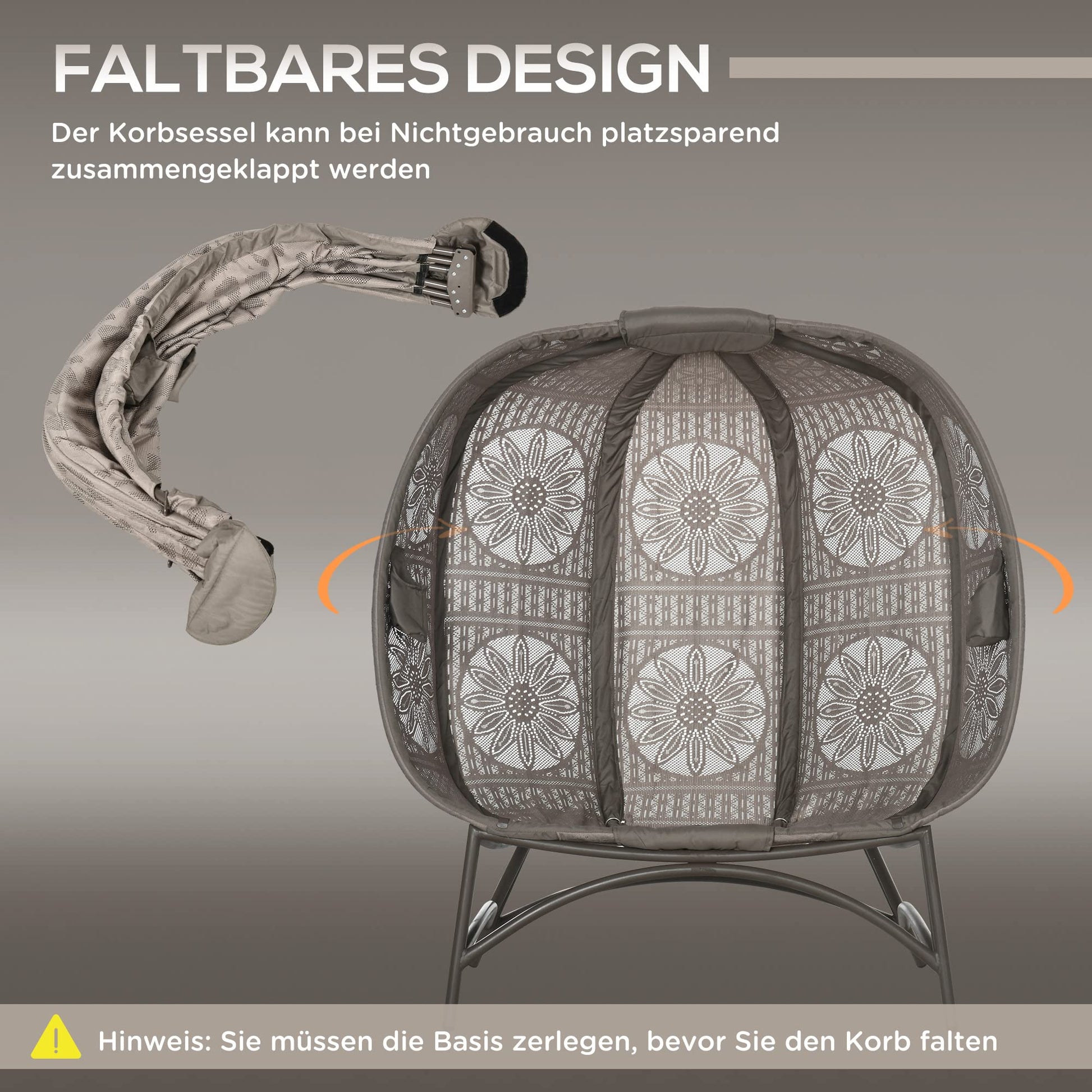 - Käytännöllinen kokoontaittuva muotoilu: suuri istuinkori voidaan helposti taittaa kokoon tarvittaessa.
