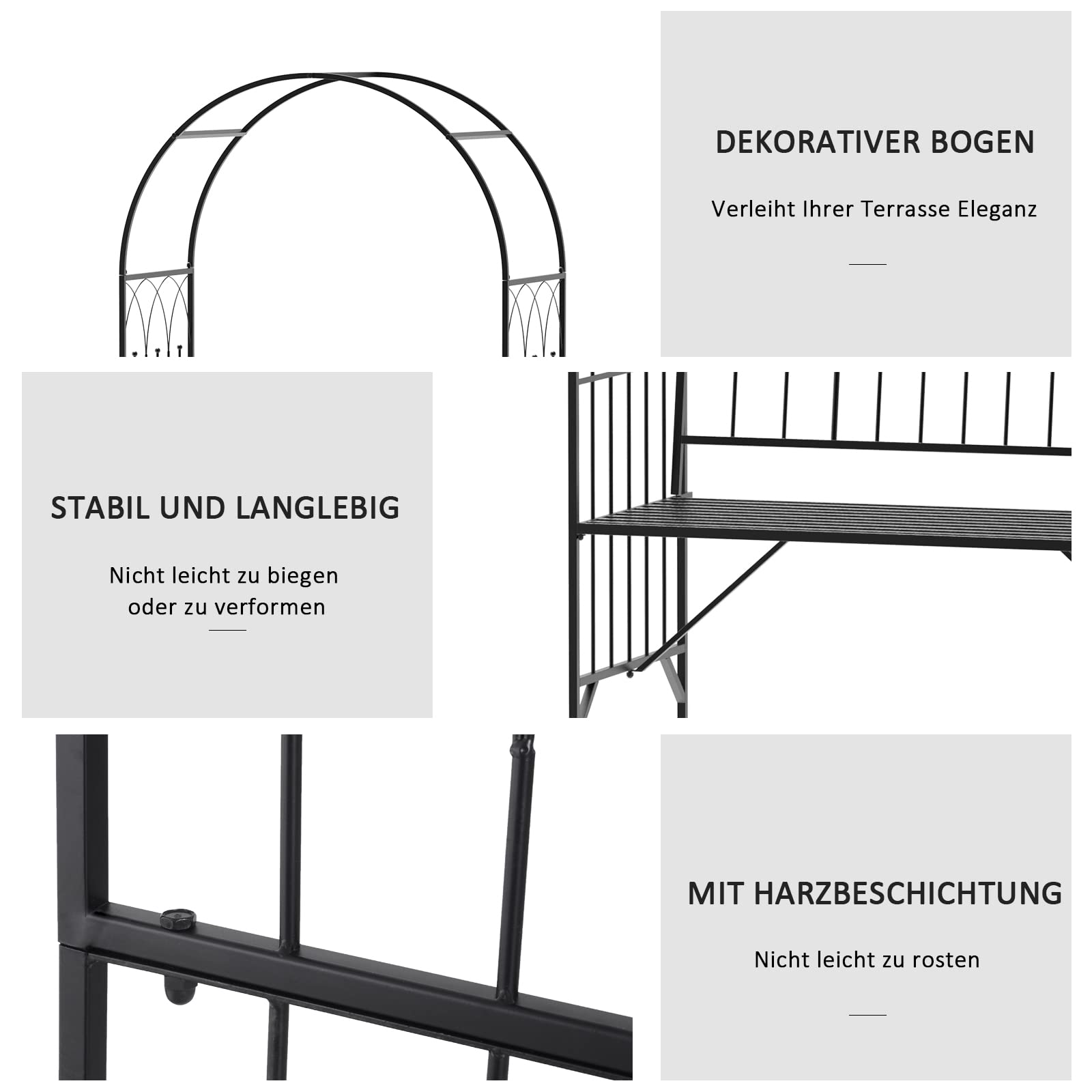 - Säänkestävä: ruusukaari on valmistettu metallista vettä hylkivällä lakalla ja on siksi säänkestävä.