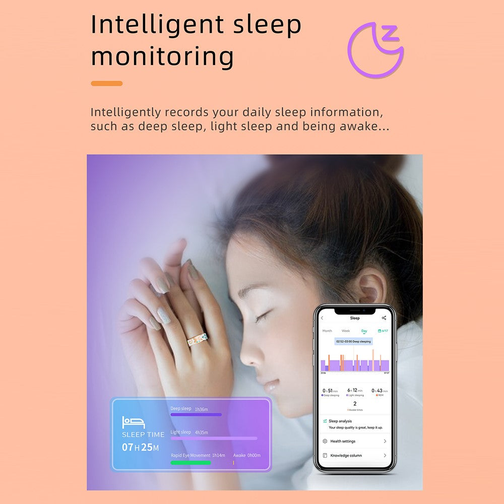 - R18-älysormus on viimeistelty upealla emalilla, joka yhdistää tyylin ja toiminnallisuuden tyylikkäässä ja vedenpitävässä muodossa.