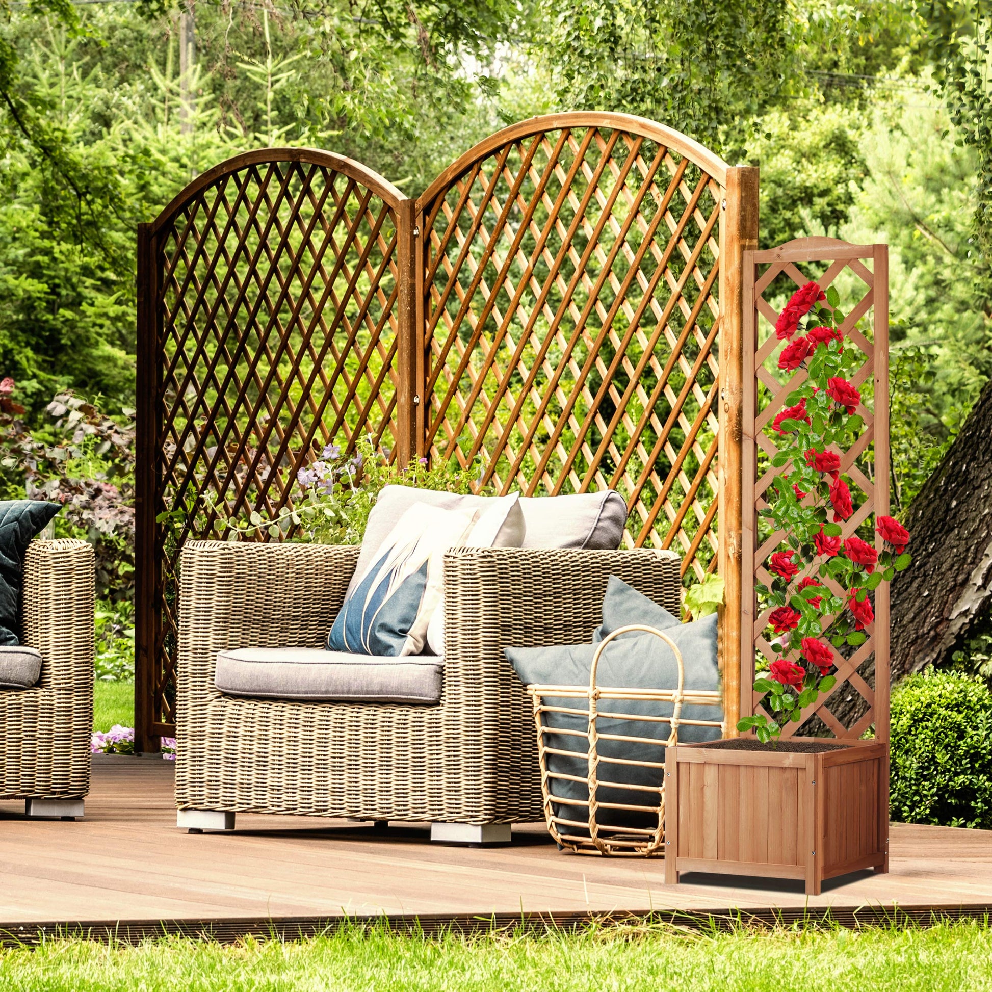 Koristeeksi: Vapaasti seisova kasvituki puutarhakoristeena, sopii jakajaksi ja yksityisyyden suojaksi.