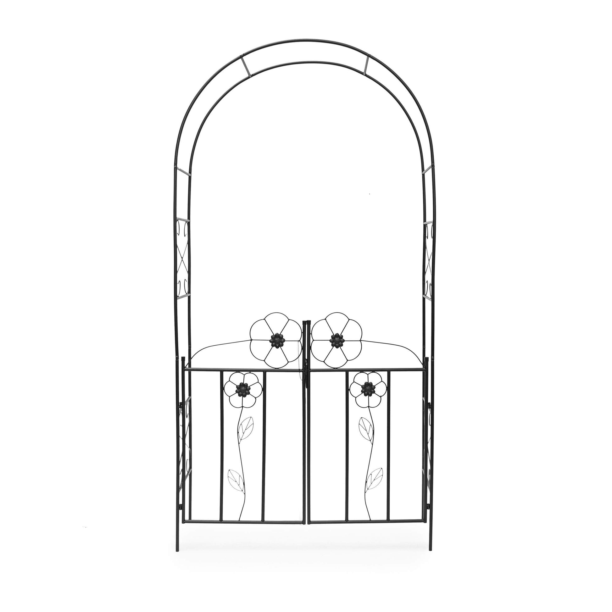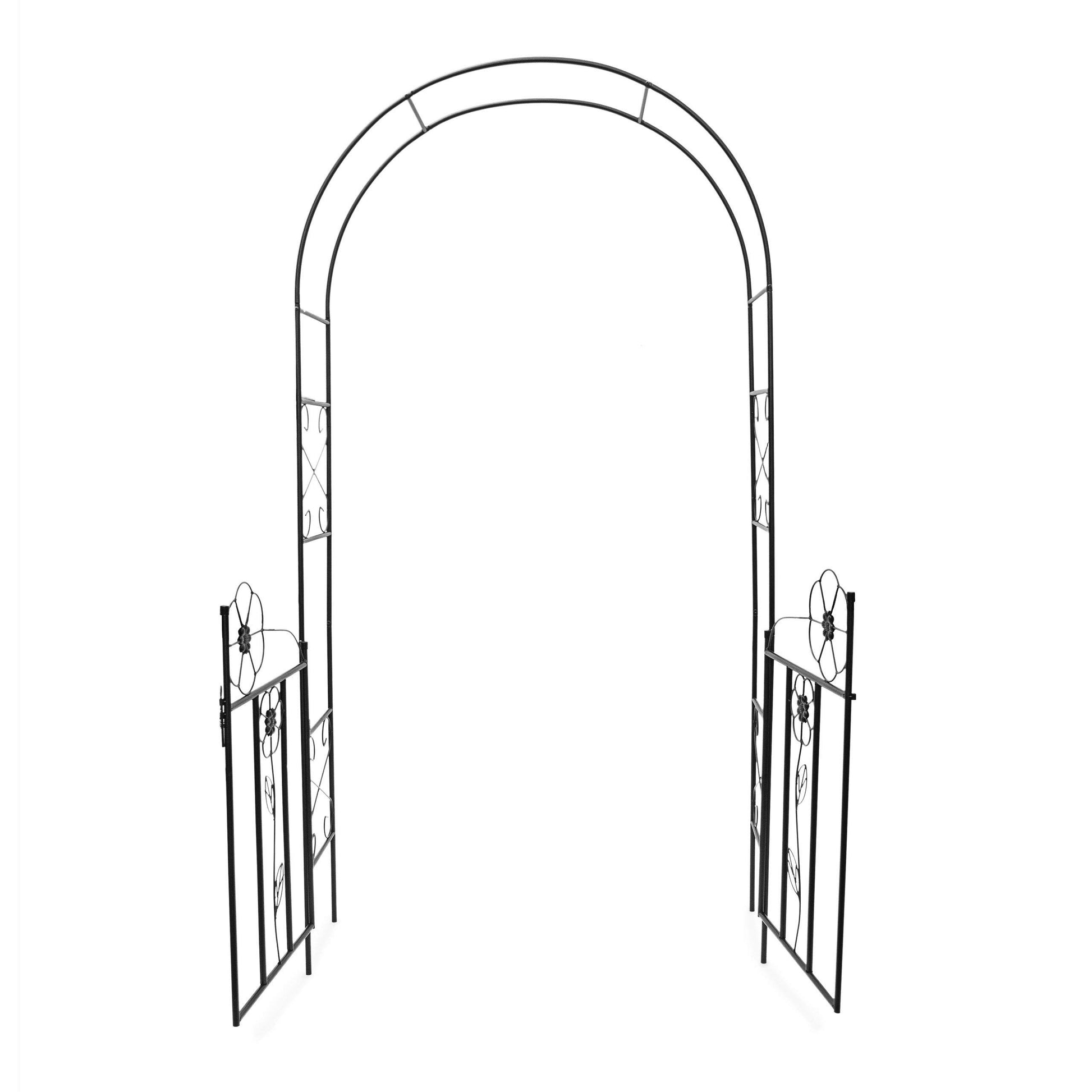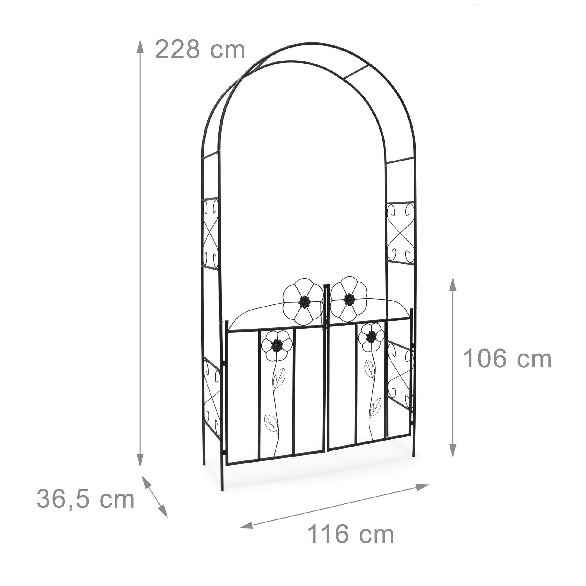 Tässä ruusukaaressa on pariovi. Se on koristeltu kukkakuviolla. Valmistettu jauhemaalatusta raudasta. Siksi se on erittäin tukeva ja säänkestävä.