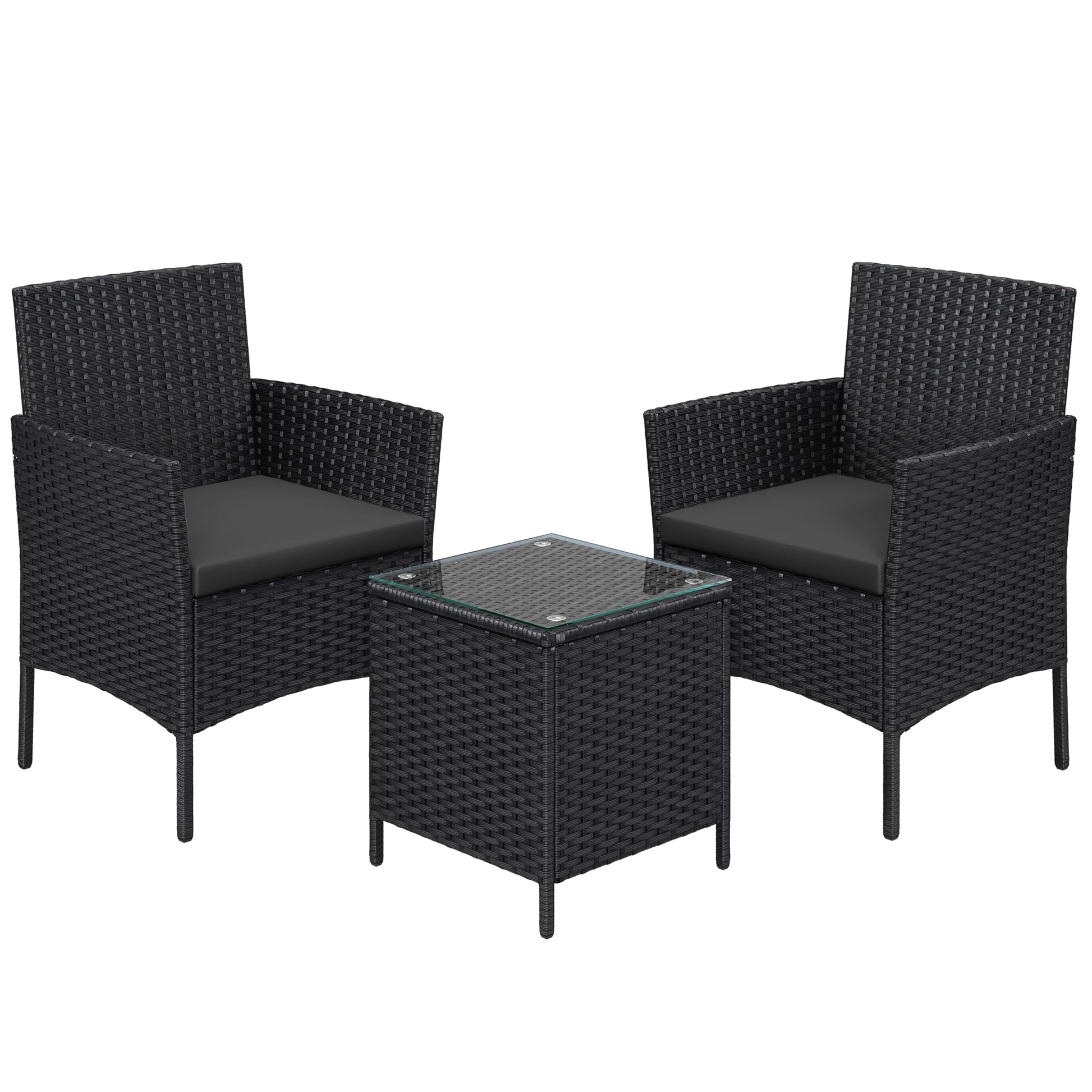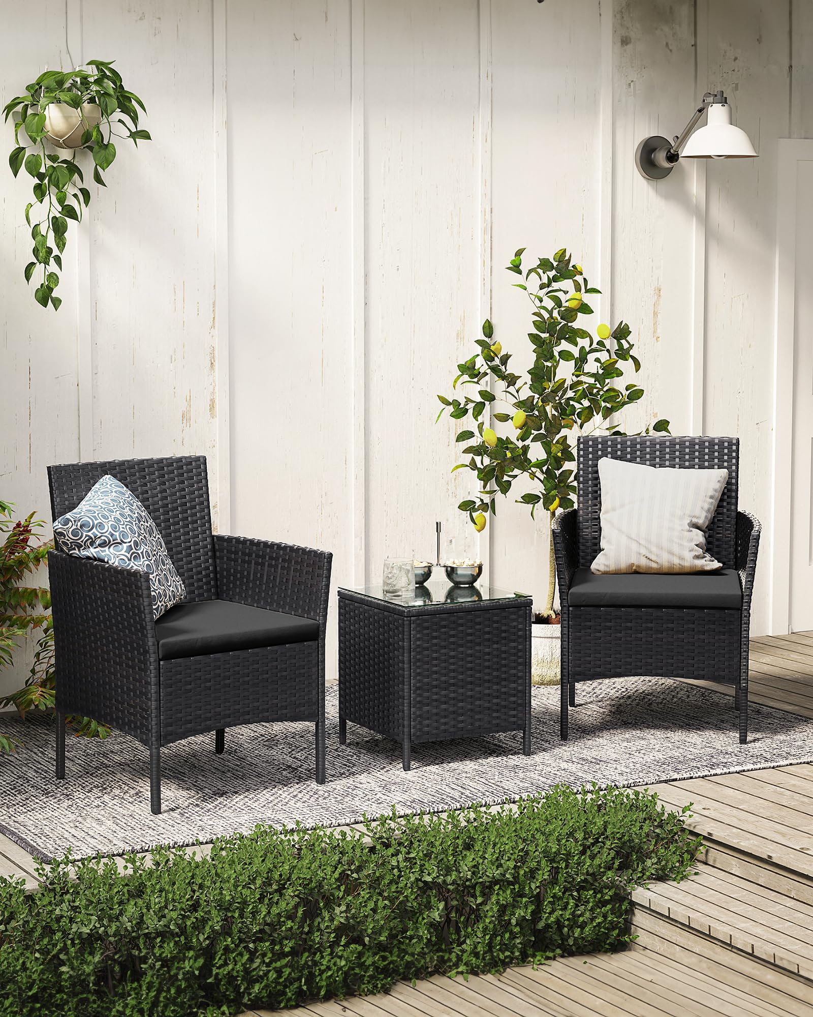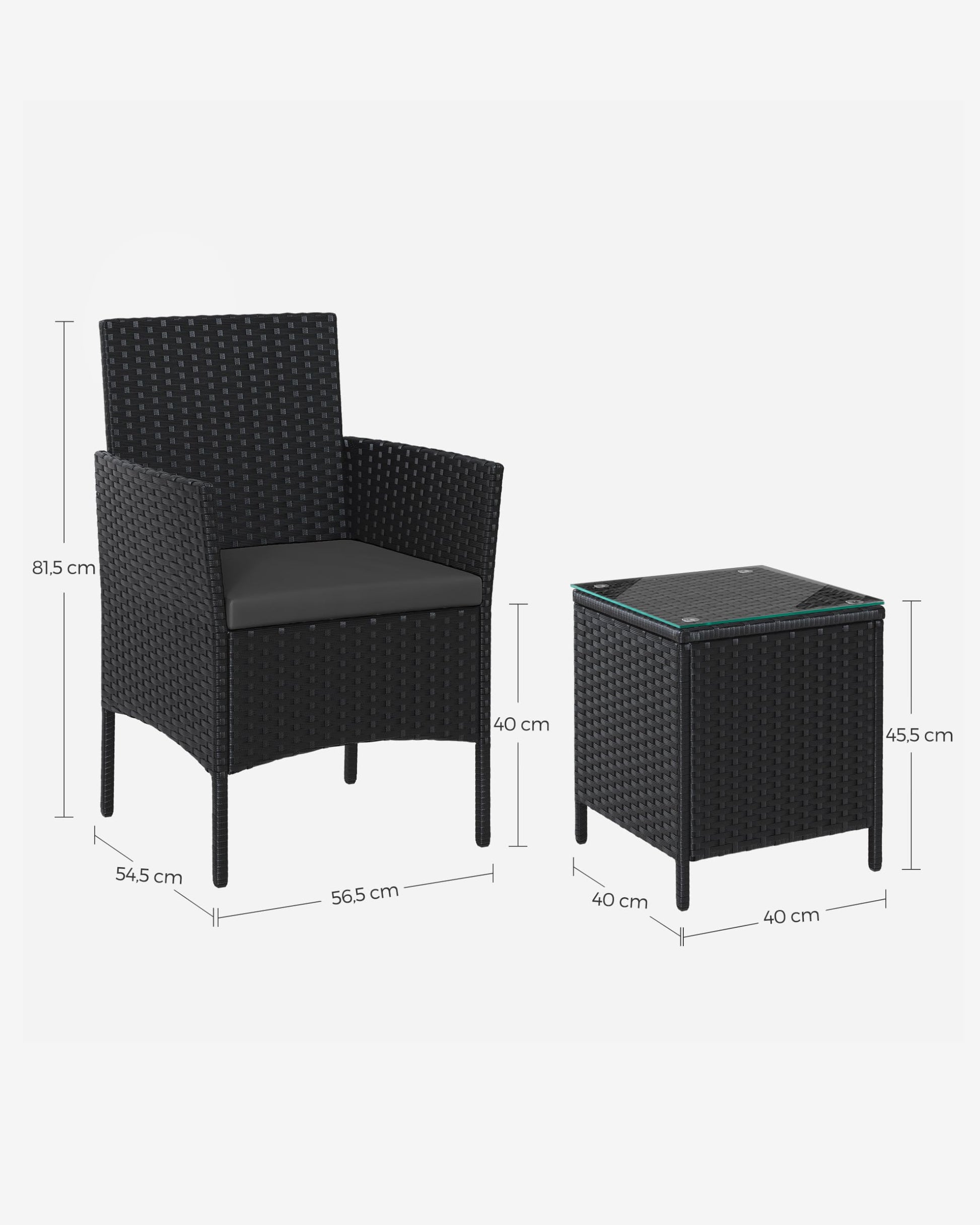 - Tukevan metallirungon ja säänkestävän PE-polyratin ansiosta tämä parvekekalustus kulkee mukanasi monta vuotta