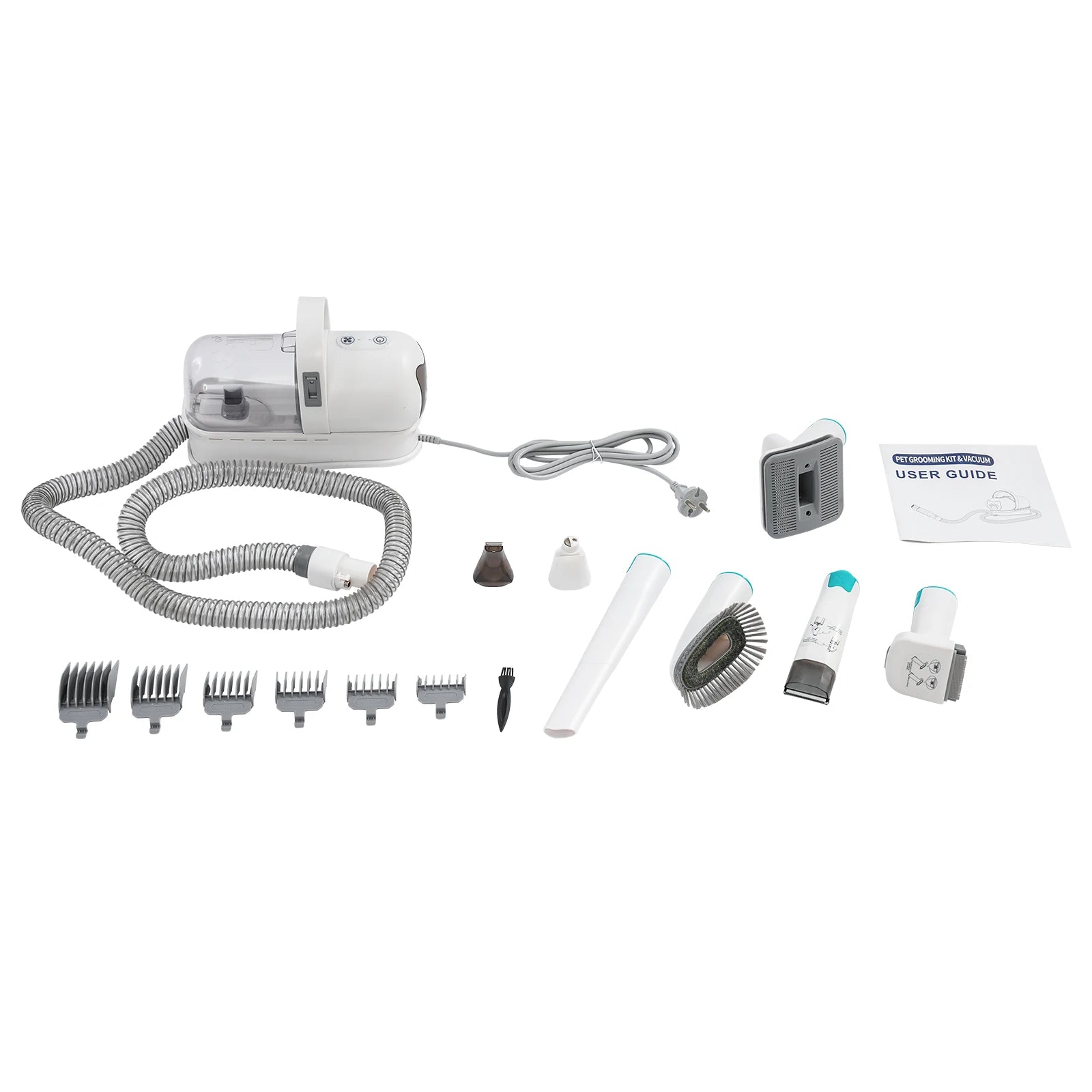 - Lisäksi tuotteeseen kuuluu täydellinen lisävarustesarja, johon kuuluu trimmeri, hoitoharja, karvanlähtöharja, tassutrimmeri, kynsihiomakone, puhdistusharja ja imulaite.