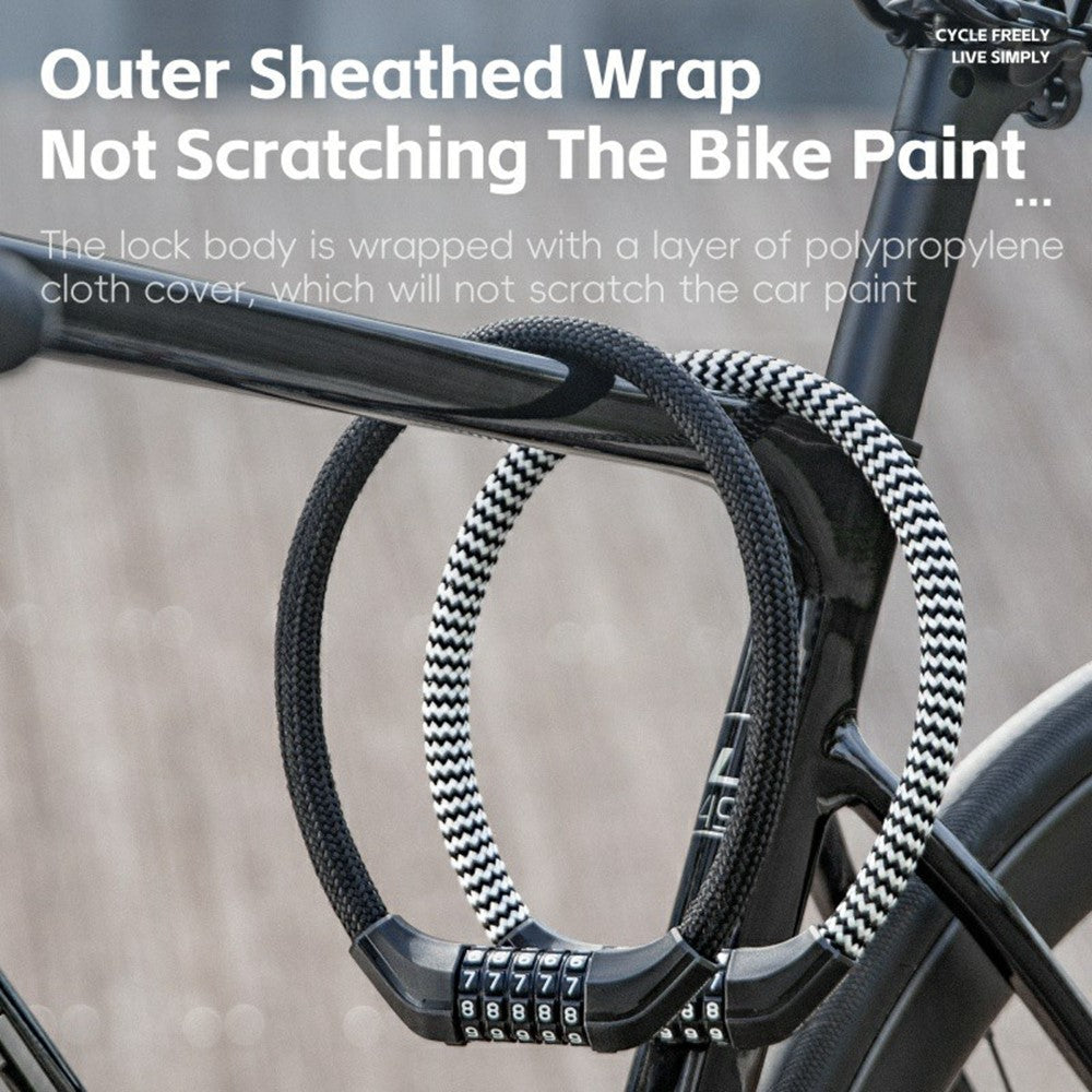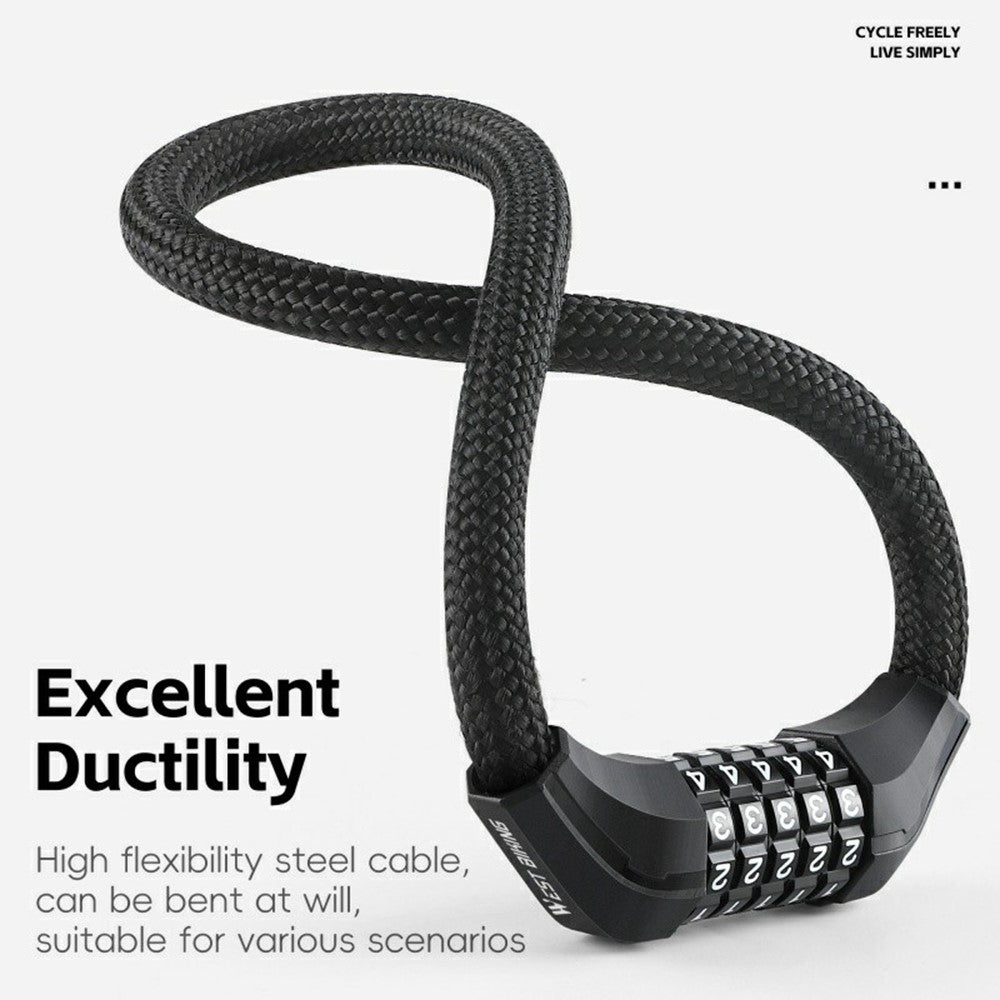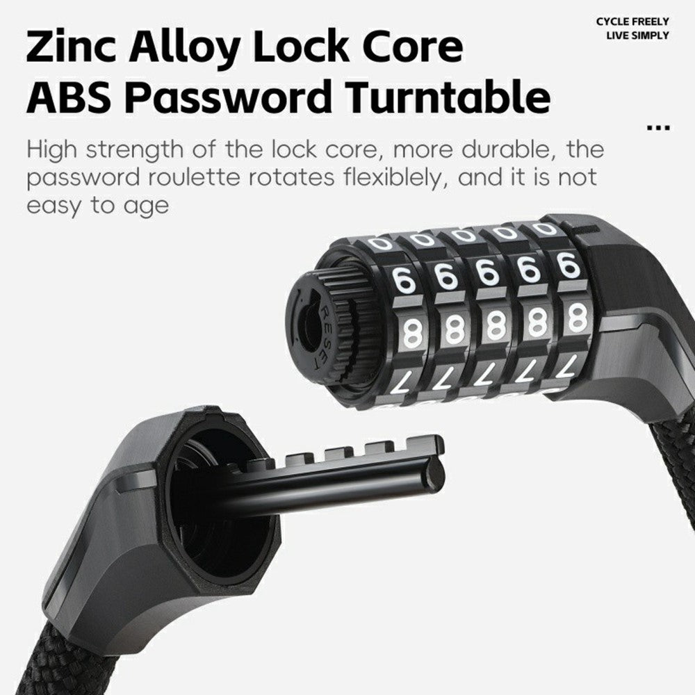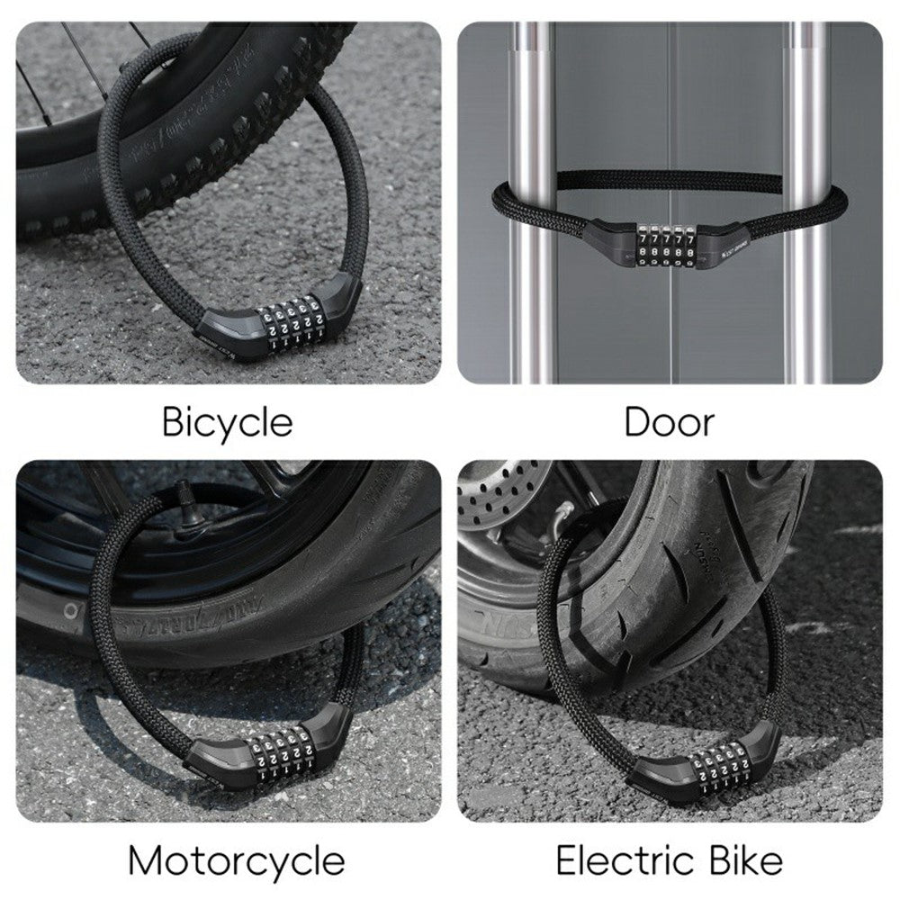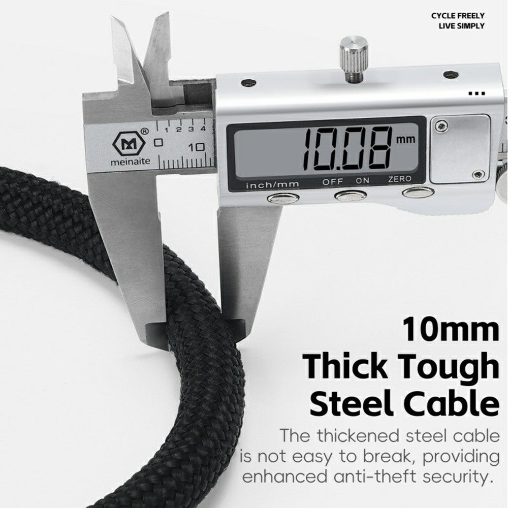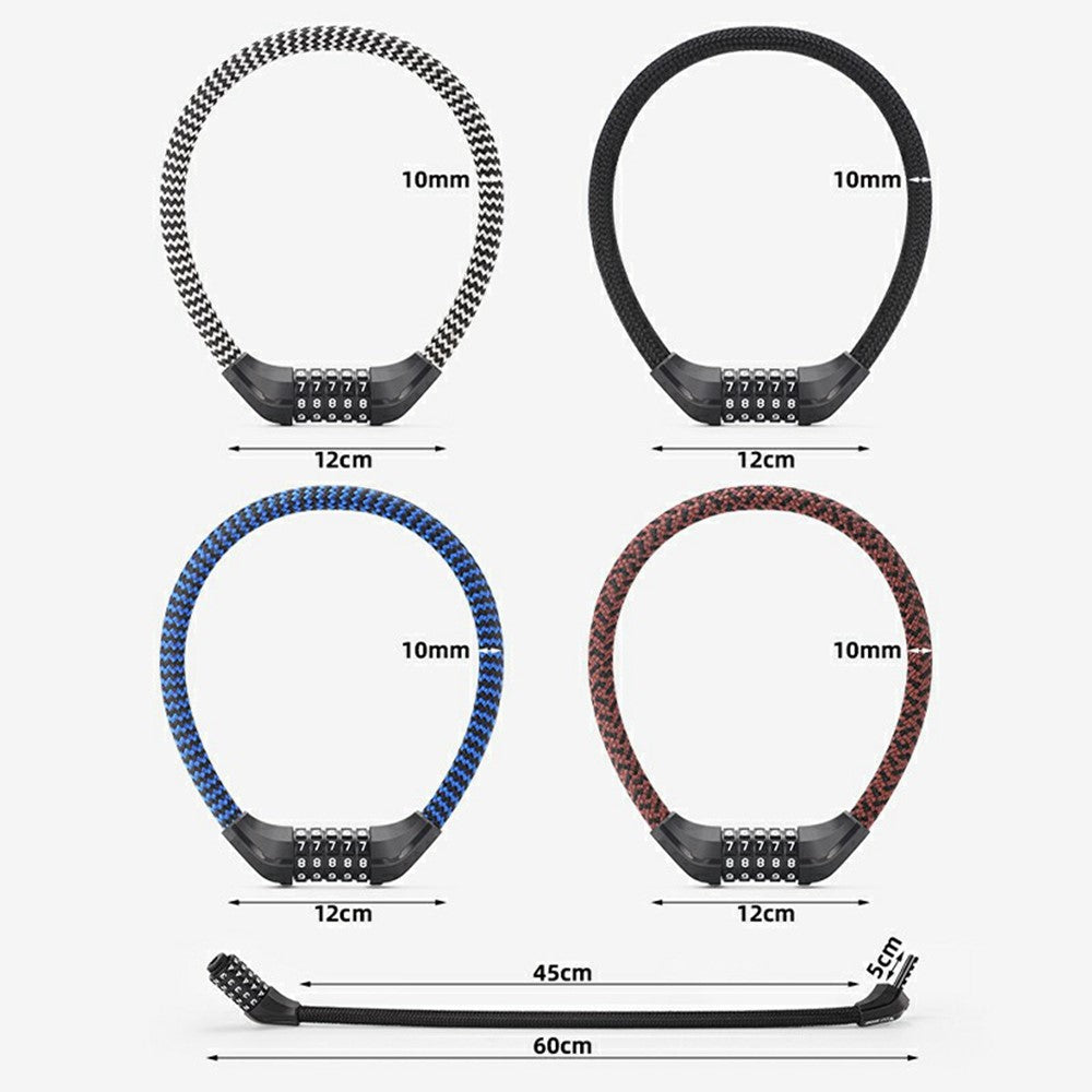- Sisältää vahvistetun teräsvaijerin, joka tarjoaa sekä joustavuutta että kestävyyttä ja mukautuu helposti erilaisiin lukitustilanteisiin.
