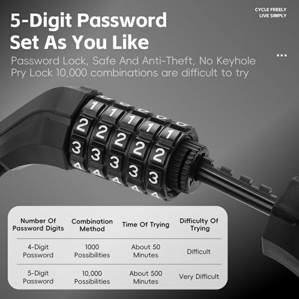 - Turvallinen 5-numeroinen yhdistelmälukko poistaa avainten tarpeen ja mahdollistaa nopean ja helpon lukitsemisen yksinkertaisella napsautuksella.