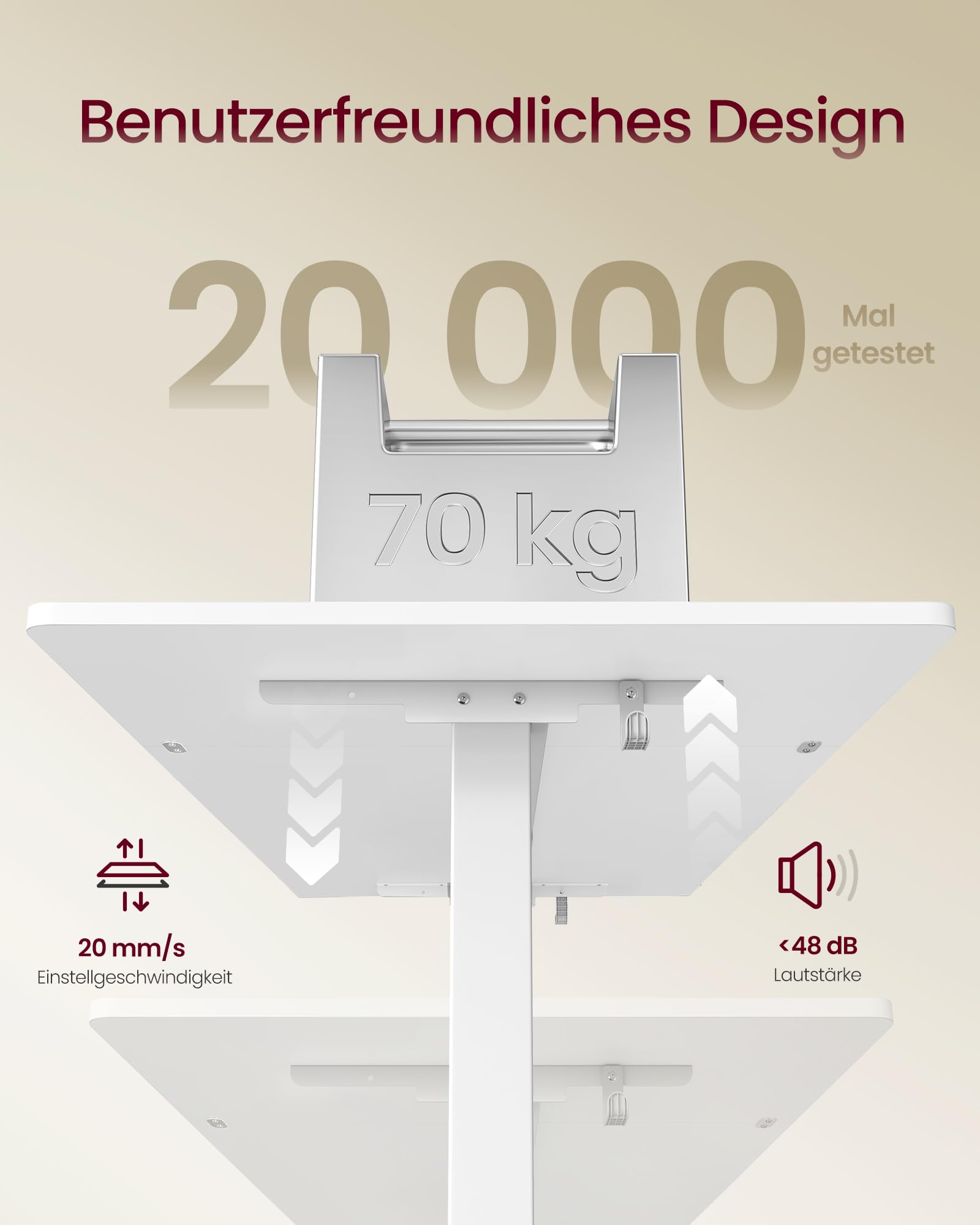 - Kestävä, äänetön, vakaa: vahvan metallirungon ja T-muotoisten jalkojen ansiosta pöytä tukee jopa 70 kg;